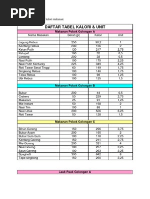 Daftar Nilai Kalori Makanan Sehari Hari Pdf